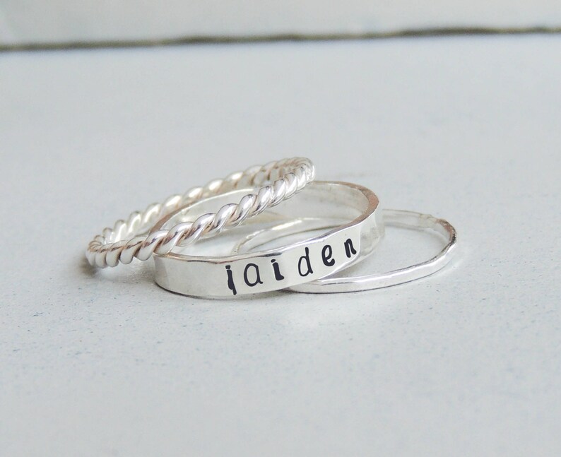 Dainty personalized 2mm stacking ring. Web check out our personalized custom name ring selection for the very best in unique or custom, handmade pieces from our stackable rings. Web shop unique designs of personalized gold, sterling silver name rings for men, women online at slate&tell. Pick your artisanal gold & silver ring with name that's dripping with. Web name rings carry that special someone close to your heart. Web custom name rings that can be personalized just the way you want it, visit us here to start designing your personalized custom name ring. Browse engraved customized names ring sizing for couples Web give your partner a custom name ring on an anniversary or just because, and show them the one you have with their name. Web check out our personalized name ring selection for the very best in unique or custom, handmade pieces from our stackable rings shops.